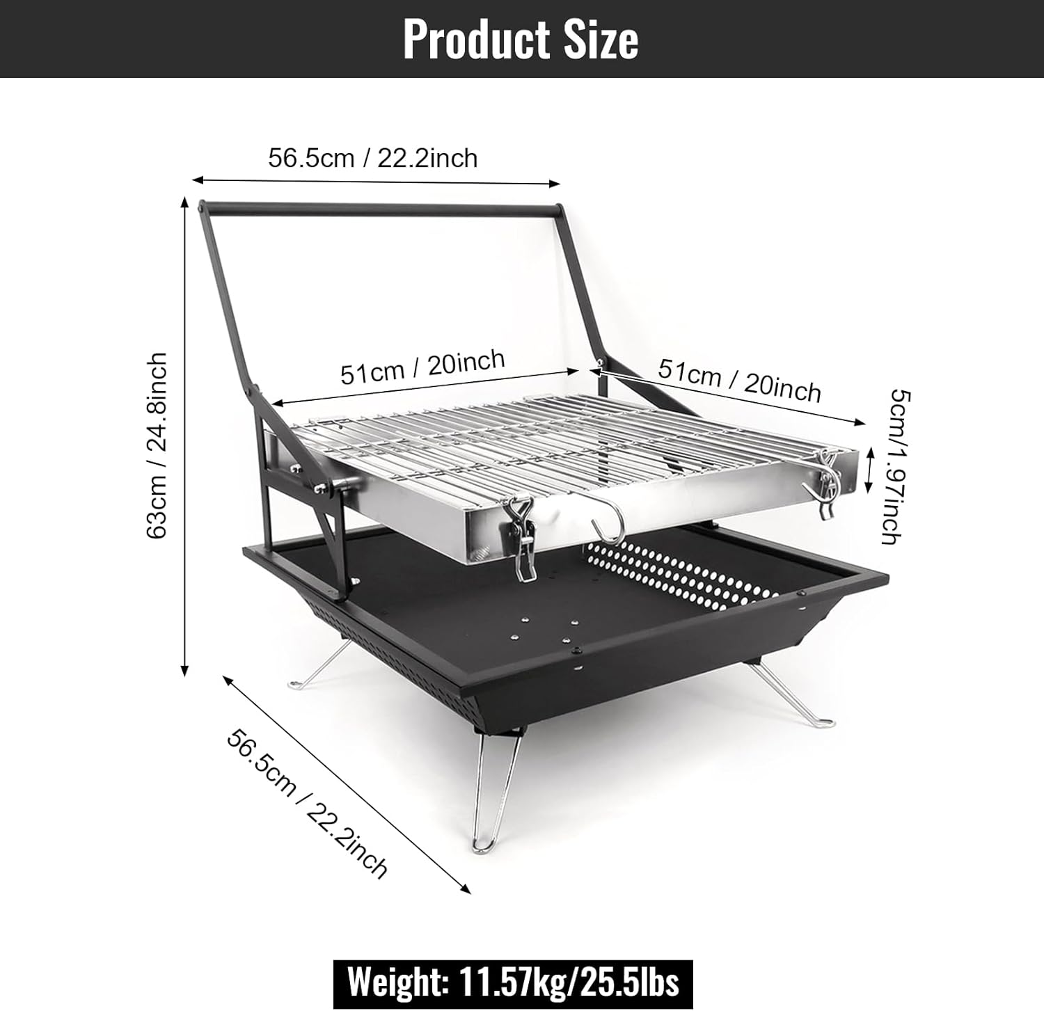 - 【Safe and Secure】The grill grate is made of food-grade 304 stainless steel for safety, reliability and durability.Clasps on grill can be locked to hold food in place when turning over.