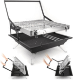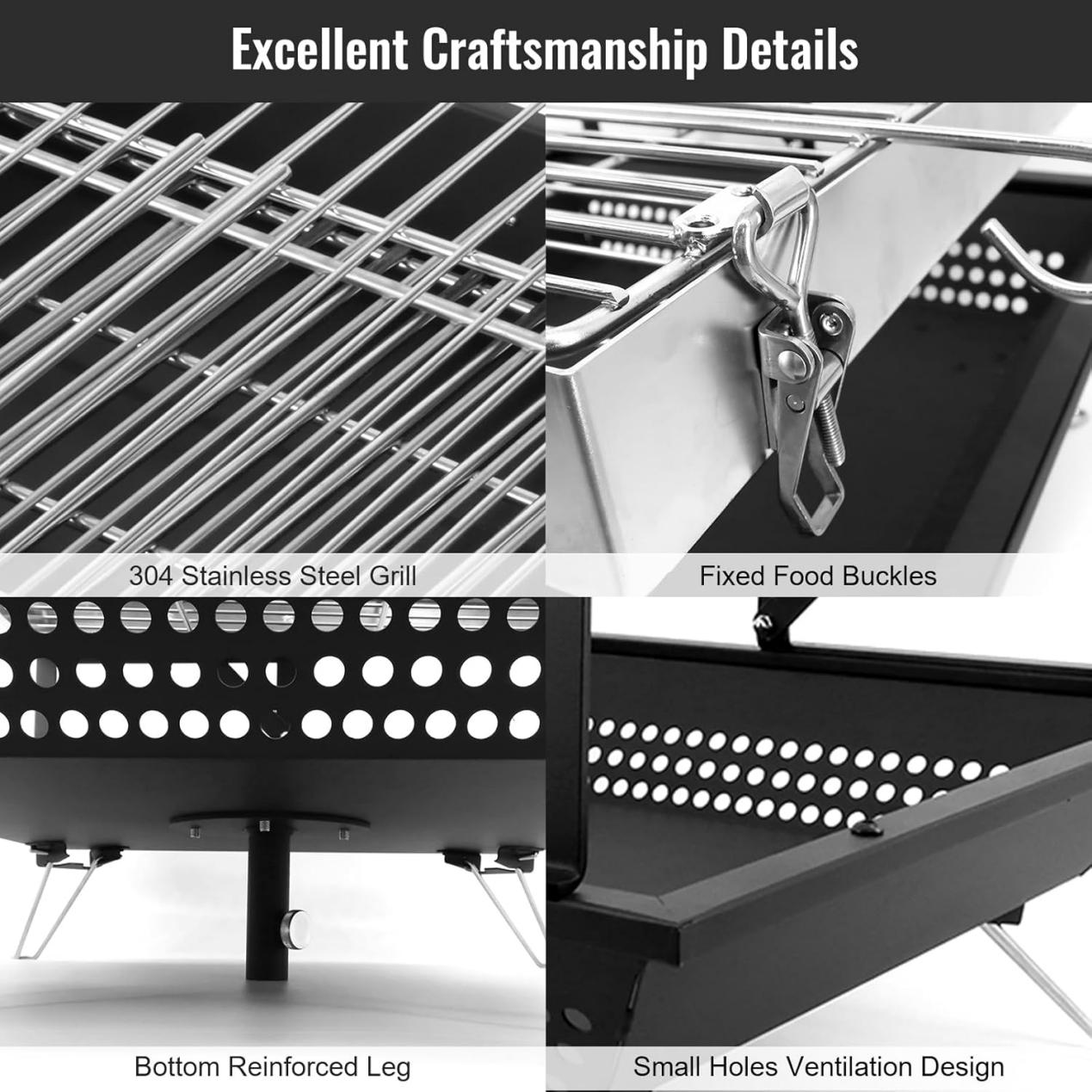 - UNIQUE DESIGN: The expanded area on both sides of the foldable barbecue grill can hold skewers and seasoning bottles freeing your hands, and the charcoal slot venting design immediately makes the charcoal glow without extra effort. In just a few minutes, you'll be serving up delicious grilled sausages and juicy steaks!
