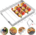 - 【Sturdy Grill】On a sturdy steel grill – place the kebabs on the grill surface to prevent the grill from burning or sticking. It has practical grooves to prevent accidental rotation of the skewer.
