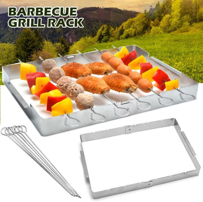 Stainless Steel BBQ Skewer Rack & Metal Skewers